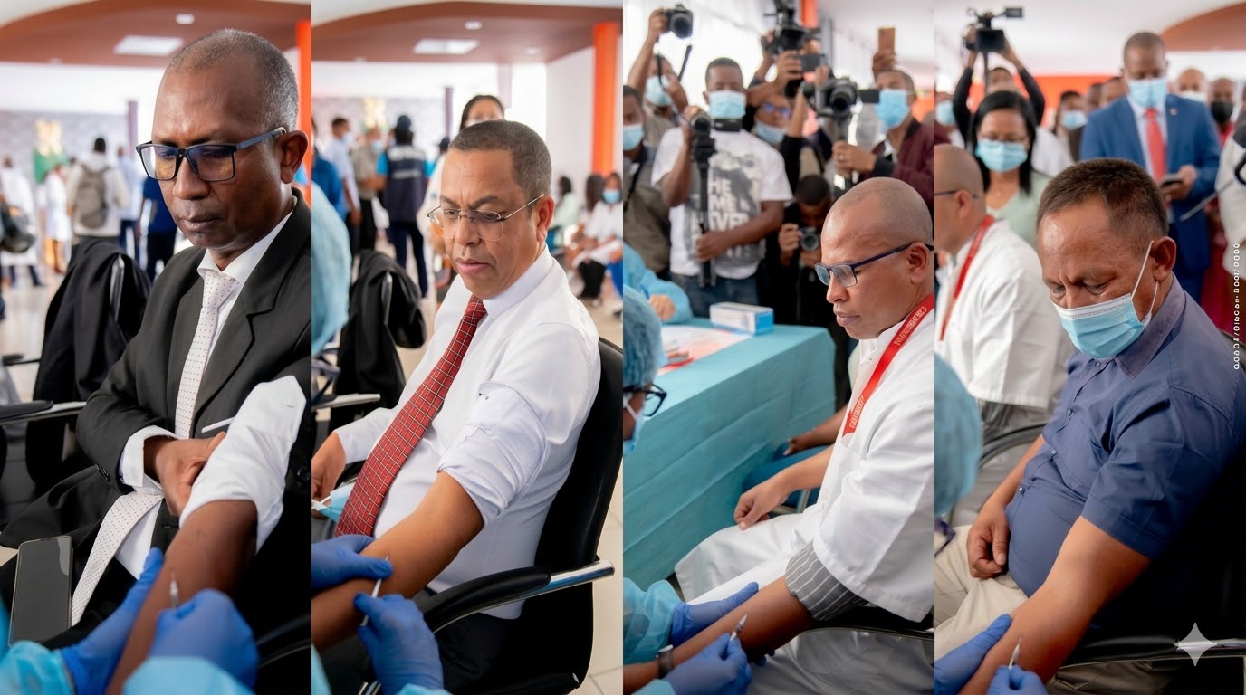 Notanterahina tao amin’ny Hopitaly Miaramila CENHOSOA Soavinandriana, Antananarivo, ny fanombohana amin’ny fomba ofisialy ny fanaovana vaksiny...